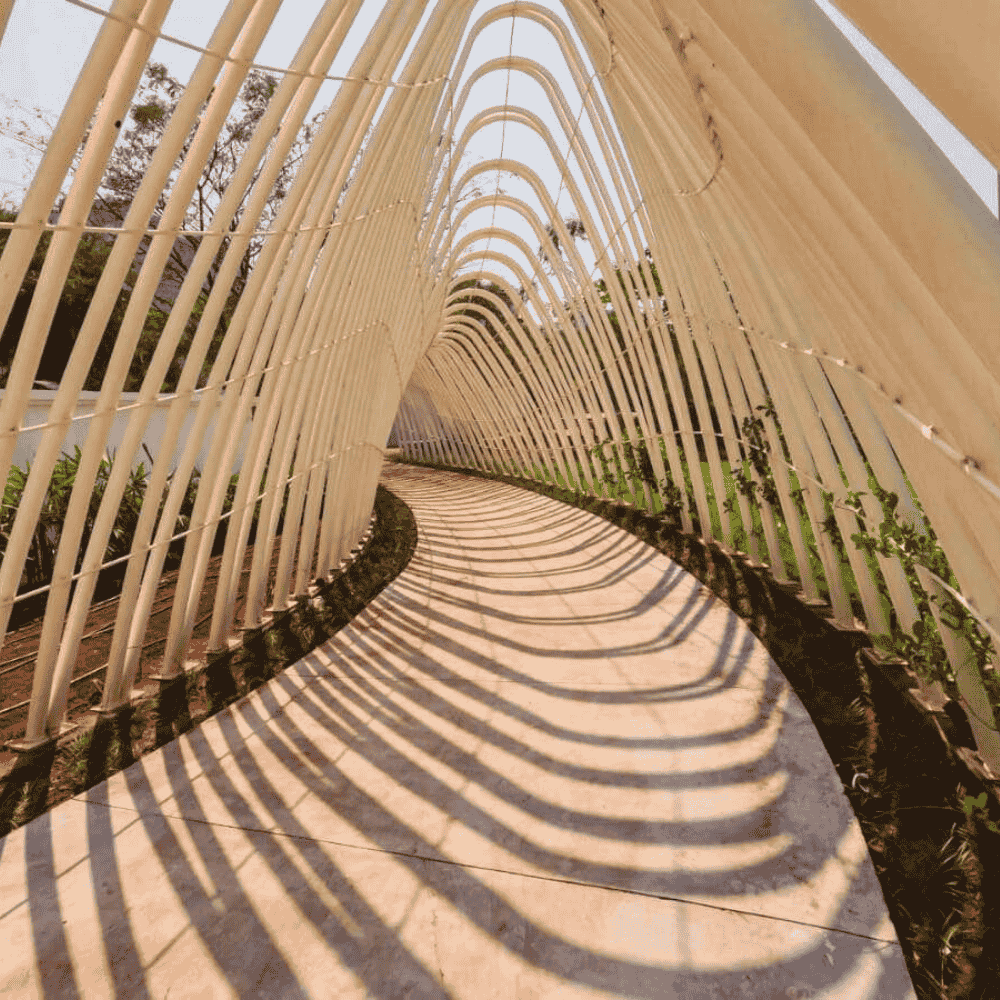 With its flowing form and rhythmic structural elements, the project showcases innovation in architectural tensile structures in India. It stands as a benchmark for tensile walkway canopy design, combining functionality, sustainability, and modern design to elevate public infrastructure and outdoor spaces.