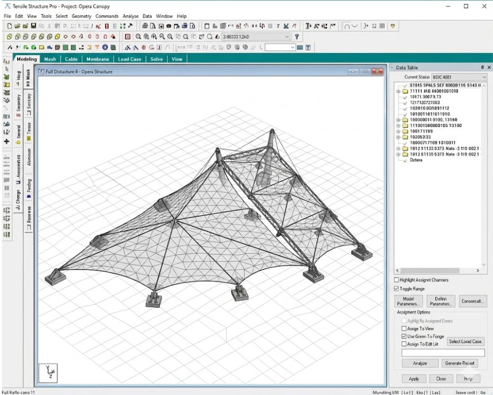 | PVC / PTFE Membrane Design | Form-finding and stress analysis for tensile membranes | Stadiums, industrial roofing, commercial canopies |